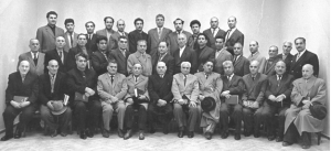Sağdan sola oturanlardan: Cəfər Əxgəri, İsmayıl Pişnamazi, Sultan Babazadə, Əbülhəsən Rəhmani, Sadıq Padeqan, Səməd Həkimi, Məhəmməd Cəlili, Zeynalabdin Qiyami, Qulamyəhya Daneşyan, Məcid Məhəmmədivənd, Cəfər Kavyan, Əli Nəğdəli;