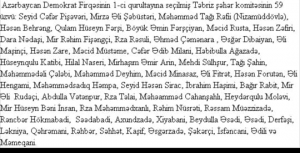 ADF-NİN BİRİNCİ QURULTAYINA TƏBRİZDƏN SEÇİLƏN NÜMAYƏNDƏLƏR Şəkil Bu sənədli şəkil tarixçi-alim Səməd Bayramzadə tərəfindən aşkara çıxarılaraq redaksiyamıza təqdim olunub. Fotoda yer alan şəxslər ali məclisə Təbrizdən seçilən nümayəndələrdir. Gəlin hamılıqla onlarla tanış olaq. Şəkildə: Paylaş