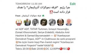 26 şəhrivər 1400-cü il(17 sentyabr 2021 ci il) Təbriz vaxtı ilə 20-30-da Azərbaycan Demokrat Firqəsinin Clubhouse-da “Niyə rejim Azərbaycan Demokrat Firqəsini hədəfə alır” adlı onlayn konfransı keçirildi. Konfransı aparan (moderatir) Rəhim Şahbazi və otaqda iştirak edənlər Azərbaycan Demokrat Firqəsinin sədri Rəhim Hüseynzadə, konfransın çıxçıları, Azərbaycan Demokrat Firqəsinin Mərkəzi Komitəsinin üzvü Pərviz Kazimi, Azərbaycan Demokrat Firqəsinin beynəlxalq əlaqələr üzrə məsulu, Azərbaycan Demokrat Firqəsinin Mərkəzi Komitəsinin üzvü Səriyyə xanım Ərdəbilli və digər iştirakçılardan ibarət idi.