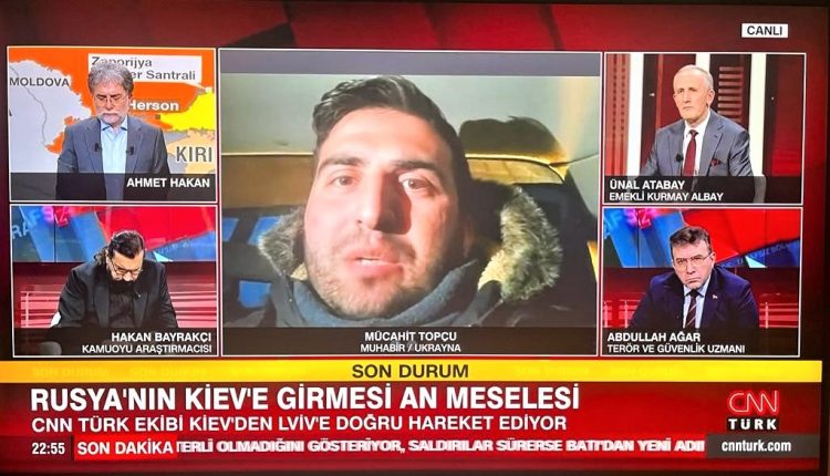Bu barədə CNN TÜRK televiziyasının Kiyevdəki müxbiri Mücahid Topçu açıqlama verib. Topçu bildirib ki, 5 mart tarixindən etibarən xarici jurnalistlər Kiyevi tərk etməyə başlamışdılar: “Şəhər mərkəzindəki hoteldə qalan jurnalistlər əsasən türk jurnalistlər idi. Biz də 5 maşın olaraq, karvan halında Kiyevi tərk etdik və hazırda Lvov istiqamətində ara yollarla irəliləyirik. Heç bir müşayiətçimiz, qoruyucumuz yoxdur. Türkiyə qəzetçiləri olaraq, özümüz özümüzü himayə edərək, Lvova gedirik”.