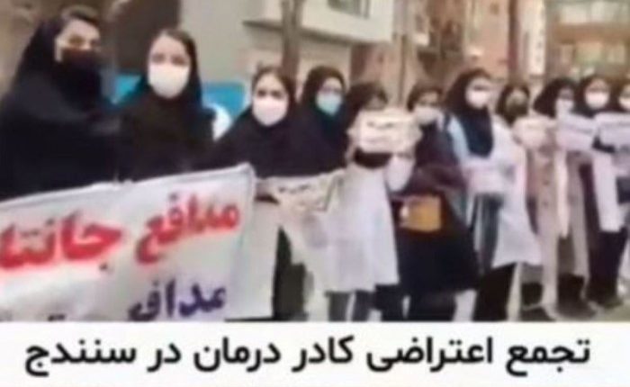 İranın Sənəndənc şəhərində tibb işçiləri valilik binası önündə etiraz aksiyası təşkil ediblər.