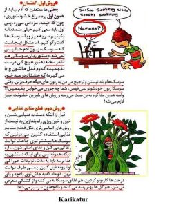 İran İslam Respublikası Xəbər Agentliyinin imtiyazı ilə buraxılan “İran” həftəlik qəzetinin cümə günü üçün hazırlanmış 12 may 2006-cı il tarixli xüsusi buraxılışındakı “Uşaqlar və yeniyetmələr” səhifəsində komik məzmunda “Nə edək ki, böcəklər bizi də böcək etməsinlər?” sərlövhəli bir yazı dərc edilmişdi. Bu komik yazıda bir oğlan uşağı “böcək” dili ilə böcəyə deyir: “Soosoo soosking sisko sooski sooskung” (fars dilində böcək-tarakan “susək” adlandırıldığından bu ifadə səsləndiyi kimi latın qrafikası ilə mətndə verilmişdir – S.B.). Amma mətndə deyildiyi kimi, böcək öz dilini yaxşı bilmədiyindən oğlan uşağının sözlərini başa düşmür və türkcə (azərbaycanca) sadəcə soruşur: “nəmənə?” (yəni, nə olub?). Deməli, belə çıxır ki, böcəyin dili oğlanın danışdığı dildir.