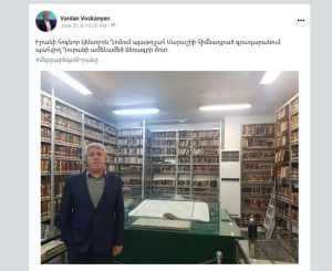 O, iranlı həmfikirləri ilə birləşərək Azərbaycan əleyhinə gizli kampaniyanın əsas müəlliflərindən biridir. Voskanyan Qum şəhərində Ayətullah Mərəşinin yaratdığı kitabxanada saxlanılan Qurani-kərimin ən böyük əlyazmasının yanında dayanaraq bildirib ki, İran Ermənistanın yanındadır.