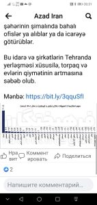 Statistikaya əsasən, bir çox şirkətlər, hətta zərər verən şirkətlər və nəqd maliyyə vəsaiti olmayan şirkətlər də Tehran şəhərinin şimalında bahalı ofislər ya alıblar ya da icarəyə götürüblər.