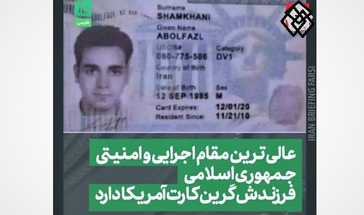 İranın ən yüksək təhlükəsizlik rəsmisinin oğlunun ABŞ pasportu var. Bu, İslam Respublikasının ali icra və təhlükəsizlik orqanının rəhbəri, dini rəhbər Xameneyinin Ali Milli Təhlükəsizlik Şurasındakı nümayəndəsi və katibi olan Əli Şamxaninin oğlu Əbülfəzl Şamxaninin “Green card” sənədinin fotosudur.