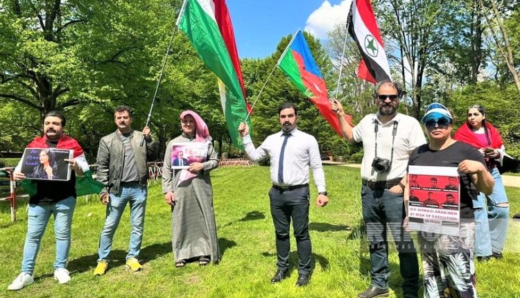İran İslam Respublikasının Almaniyanın Hamburq şəhərindəki konsulluğunun qarşısında etiraz aksiyası keçirilib.