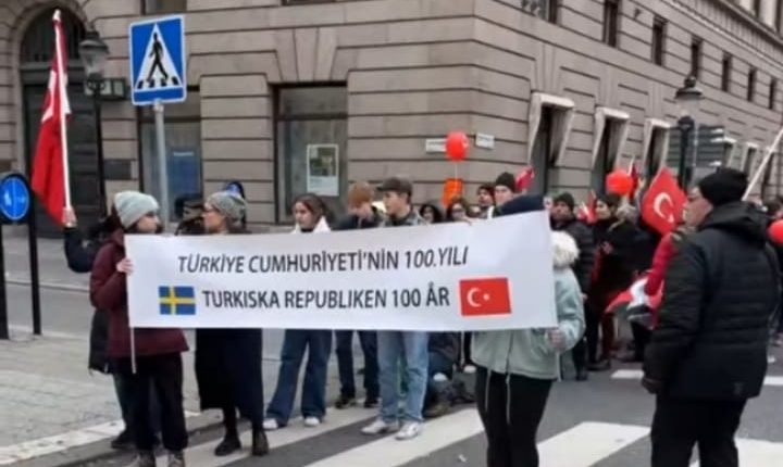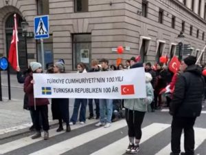 Türk Qadınları Federasiyası (sayın xanım əfəndi Tülin Uyqurun başqanlığı ilə), Umut Vəqfi, İsveç Türk Düşüncə və Kültür Dərnəyilə birgə təşkilatçılığ olan Stokholmda Türkiyə Cümhuriyyətimizin 100-cü ildönümü münasibətilə,şəhərin Kungsträdgården-dən Türkiyə Səfirliyi arasında yürüş baş tutdu. Marşımız, Dövlət Himnimiz və 5 digər himn ifa edilərək Stokholm Gənclər Bandıda müşayiət edilirdi . İsveç və Türkiyə bayraqları, şarları ilə yürüş edərkən, Cümhuriyyətimizin 100 illiyini birlikdə qeyd etdik. Yürüşün sonunda Türkiyənin böyük və səlahiyyəti cənab Səfiri, yürüş iştirakçılarını dərin qayğilə qarşıladı.