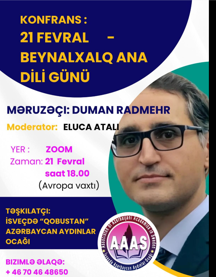 İSVEÇDƏ KONFRANS: 21 FEVRAL BEYNALXALQ ANA DİLİ GÜNÜ TƏŞKİLATÇİ : İSVEÇDƏ "QOBUSTAN" AZƏRBAYCAN AYDINLAR OCAĞI Paylaş