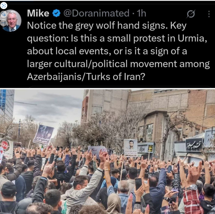 “Boz qurdun əl nişanlarına diqqət yetirin. Açar sual: Bu, Urmiyada yerli hadisələr haqqında kiçik bir etirazdır və ya İran Azərbaycanlıları / Türklər arasında daha böyük bir mədəni / siyasi hərəkatın əlamətidir? “