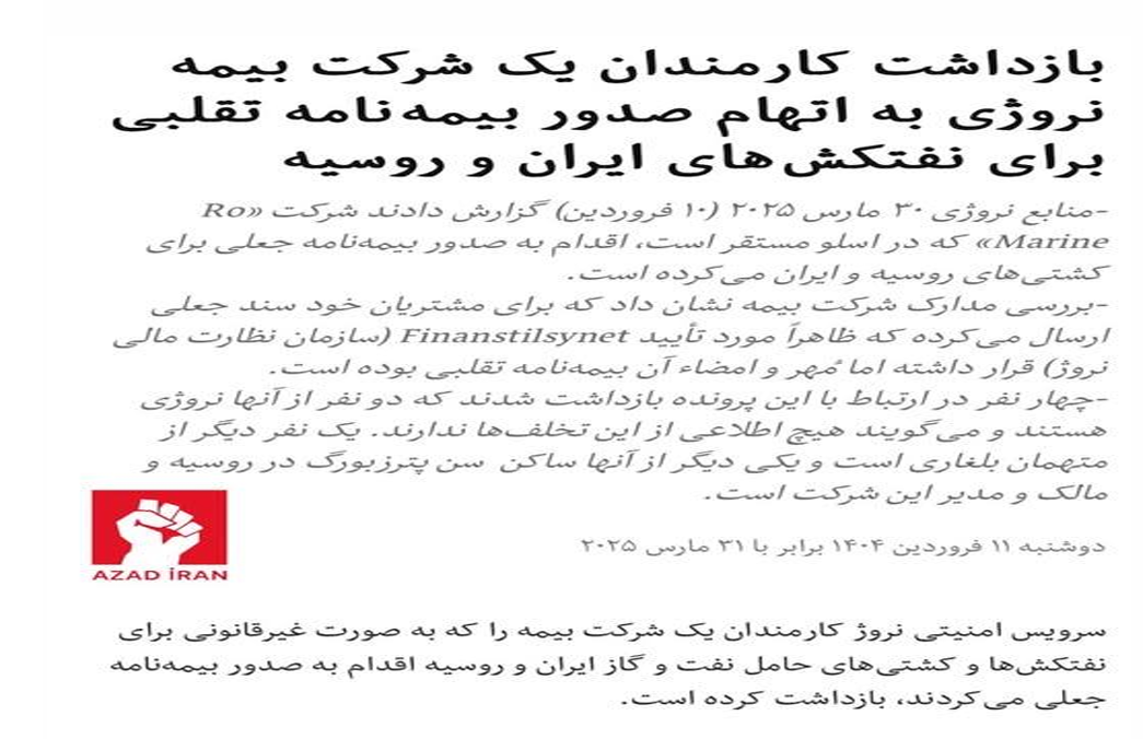 İran gəmiləri üçün saxta sığorta sənədləri verdiyini açıqlayıb.