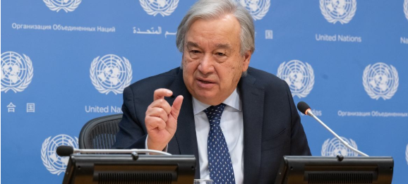 BMT-nin Baş katibi Antonio Quterreş Nyu-Yorkdakı BMT-nin qərargahında mətbuat konfransında çıxış edərkən.