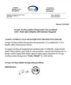 Ramazan bayramı günü Danimarkaya zəng edib əfsanəvi fədai, Təbrizdə Milli Ordunun mayoru olmuş, igidlikləri dillər əzbəri Məmi Sadiqinin oğlu Səfərə zəng edib xoş duyğularımızı yetirmək istədim. Alınmadı. Bunu məsləkdaşlarımıza bidirəndə dedilər ki, mayın 12-də ad günü olub, 64 yaşını təbrik edə bilərsən. Xoş duyğuları elektron poçtla ünvanladım. Yazdı ki, sağ ol, amma bildirmədi həmin gün Avropa Azərbaycanlıları Konqresi bu qitədə Azərbaycan həqiqətlərinin tanıdılması və lobbiçilik istiqamətində ardıcıl fəaliyyətinə görə onu-AAK-ın vitse-prezidentini konqresin “Xatirə Medalı” ilə təltif edib.