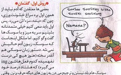 İran İslam Respublikası Xəbər Agentliyinə aid olan “İran” qəzetinin 12 may 2006-cı il tarixli həftəlik cümə əlavəsinin uşaq və yeniyetmələrə aid bölməsində “Həşəratların bizləri həşəratlaşdırmaması üçün nə edək?” başlıqlı karikatura yayımlandı. Karikaturanın əvvəlində olan ilk şəkildə bir oğlan guya həşərat (tarakan) dilində həşəratdən soruşur: soosoo soosking sisko sooski sooskung (susk sözü farscada həşərat deməkdir). Cavabında isə həşərat belə cavab verir: Nəmənə ? (nəmənə Cənubi Azərbaycanda nə anlamına gəlir). Oğlan həşəratın danışığından heç nə başa düşmür və karikatura belə davam edir:
