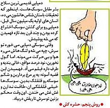 Dördüncü üsul: Həşəratların qorxulu yuxularına girən şeylərdən biri ayaqaltı başmağıdır. Milyonlarca il öncəsində “ibtidai insanlar” həşəratlardan qurtulmaq üçün bu silahı işlətmişdirlər. Həşəratlar ayaqaltı başmağının zərbəsini aldıqdan sonra kürəkləri üstünə yıxılar və qalxmağa çalışarlar. Bu vəziyyətdə bir toyuq tükü ilə onları qıdıqlayınız. Onlar qıdıqlanmağı sevər və gülməkdən keçinərlər. Elə o anda suları çıxacaq qədər başlarına bərk bir zərbə endirin.