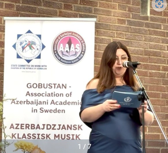Cəmiyyətin sədri Səadət Kərimi konsertdən əvvəl çıxış edərək zala toplaşanlara məşhur Norveç alimi və səyyahı Tur Heyerdalın diqqətini çəkən Qobustanın qədim tarixi və petroqliflər barədə məlumat verib. O qeyd edib: “Cəmiyyətimizin üzvləri hüquqşünaslar, musiqiçilər, həkimlər və alimlərdən ibarətdir. Hər birimiz İsveç ilə Azərbaycan arasında körpülərin qurulması üçün səy göstəririk”.