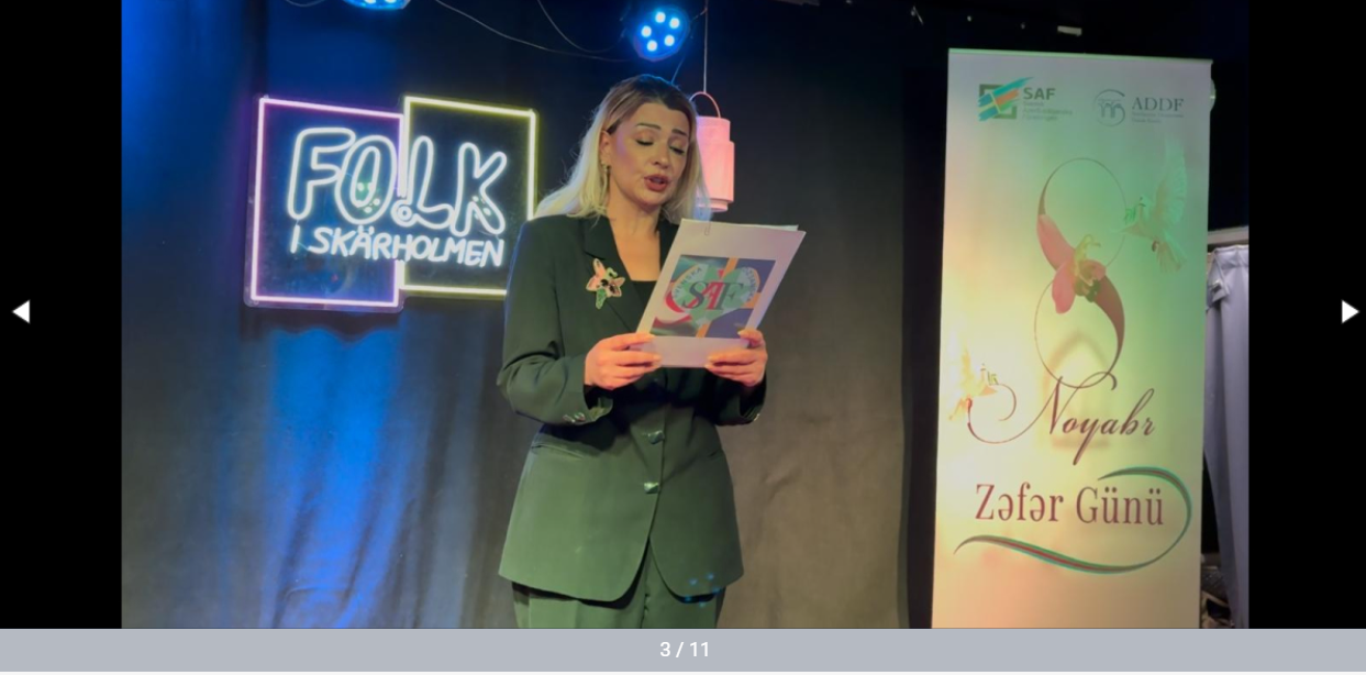 İsveç–Azərbaycan Birliyinin sədri Sevda Dadaşova qeyd edib ki, uzun illər işğal altında qalan torpaqlarımız beş il öncə Müzəffər Ali Baş Komandan İlham Əliyevin rəhbərliyi, şəhidlərimizin qanı, qazilərimizin fədakarlığı, analarımızın duaları və xalqımızın sarsılmaz iradəsi sayəsində azad olunub. “Bu gün dünyada müharibələr, parçalanmalar və zülm davam edir. Biz isə qalib xalq olaraq sülhün, ədalətin və insanlığın tərəfində dayanırıq. Qarabağda tikilən hər ev, hər məktəb, əkilən hər ağac yeni həyatın simvoludur,” – deyə S.Dadaşova vurğulayıb.