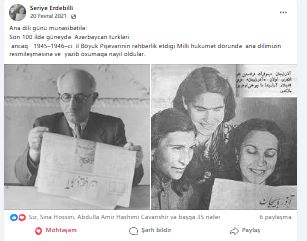 Ana dili günü munasibətilə: Son 100 ildə güneydə Azərbaycan turkləri ancaq 1945–1946–ci il Böyuk Pişevərinin rəhbərlik etdigi Milli hukumət dörundə ana dilimizin resmileşməsinə ve yazib oxumaqa nayil oldular. Paylaş