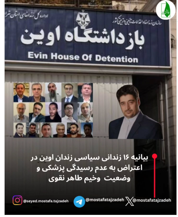 ما به عنوان جمعی از زندانیان سیاسی، اعتراض شدید خود را به بیتفاوتی، ترک فعل و اهمال آشکار مسئولین در زمینه تمهید موجبات و شرایط لازم برای اعزام آقای طاهر نقوی به مراکز درمانی خارج از زندان جهت درمان به موقع شایسته و لازم را اعلام نموده و متذکر میشویم حق حیات انسانها به عنوان حقی بنیادین که در اعلامیه جهانی حقوق بشر، میثاق بین المللی حقوق مدنی و سیاسی قواعد حداقل استاندارد برای رفتار با زندانیان مصوب مجمع عمومی سازمان ملل متحد و سایر اسناد بالادستی بین المللی و داخلی، محترم دانسته شده و بر حفظ آن تاکید گردیده است جز با تامین سلامت انسانها و زندانیان که ذات و سرشت بشری دارند، قابل محافظت نیست.