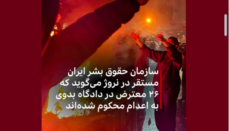 سازمان حقوق بشر ایران، مستقر در نروژ، اعلام کرده است که دستکم ۲۶ نفر از بازداشتشدگان اعتراضات دیماه امسال در دادگاههای بدوی جمهوری اسلامی به اعدام محکوم شدهاند.