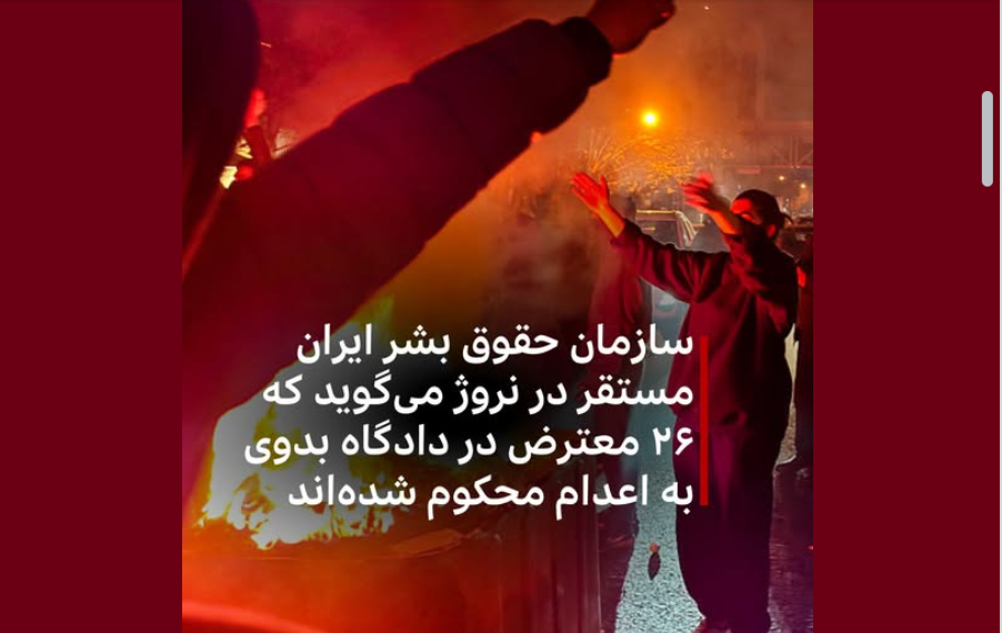 دستکم ۲۶ نفر از بازداشتشدگان اعتراضات دیماه امسال در دادگاههای بدوی جمهوری اسلامی به اعدام محکوم شدهاند.