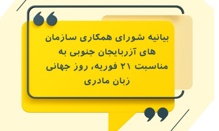 بار دیگر، به مناسبت روز جهانی زبان مادری، با تاکید بر جلب توجه افکار عمومی جهان به محدود شدن حق تحصیل به زبان مادری و سخن گفتن آزادانه به زبان خود برای میلیون‌ها آذربایجانی ساکن آذربایجان جنوبی، از همگان می‌خواهیم که از این روز که توسط یونسکو تاسیس شده است، برای حمایت از حفظ تنوع زبانی و حق آموزش به زبان مادری برای همه پشتیبانی کنند. ما برای آذربایجانی‌های ساکن در ایران، رسمی‌شدن زبان مادری‌شان و ایجاد امکان تحصیل نظام‌مند به آن زبان را مطالبه می‌کنیم.
