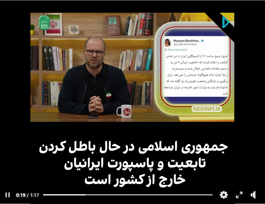 جمهوری اسلامی در حال لغو تابعیت ایرانی و باطل کردن پاسپورت میلیونها شهروند ایرانی خارج از کشور است که در راهپیماییها و تظاهرات برای براندازی رژیم شرکت کردهاند. ورود این گروه از ایرانیان به ایران از این پس ممنوع میباشد.